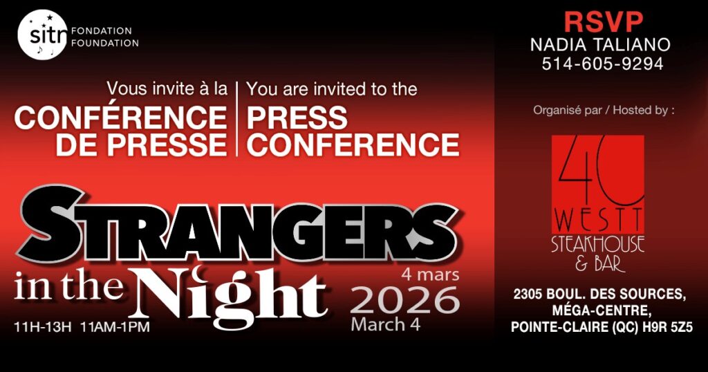 POUR PUBLICATION IMMÉDIATE Strangers in the Night Gourmet Gala 2025 Montréal, QC – 12 mars 2025Le 20e gala de bienfaisance annuel « Strangers in the Night » est prêt à ravir et à inspirer.